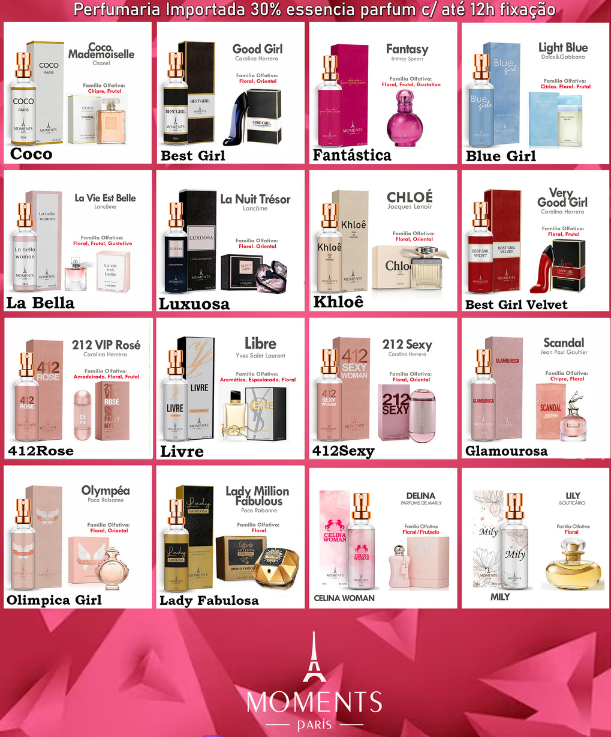 30% essência parfum inspirados em fragrâncias consagradas internacionalmente.
